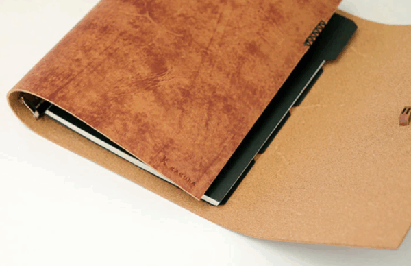 シンプルで機能性も兼ね備えたKAKURAのシステム手帳は使えば使うほど味が出てき、その人に馴染んでいくという素敵な紐巻きレザーシステム手帳。