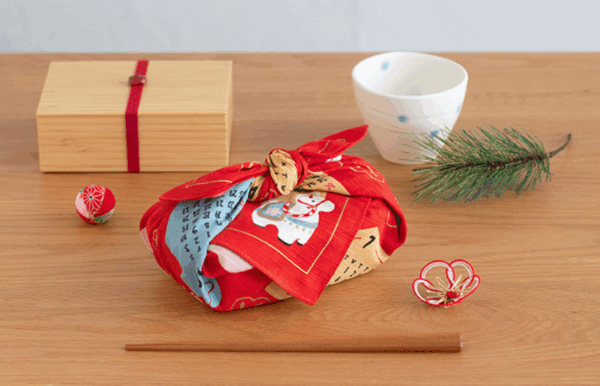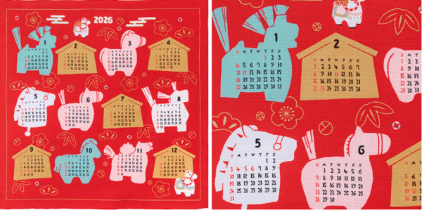 50cmサイズなので、カレンダーとしてお使いいただいた後は、お弁当包みとしてもお使いいただけます。また、おめでたいラッピングとしてもおすすめです。